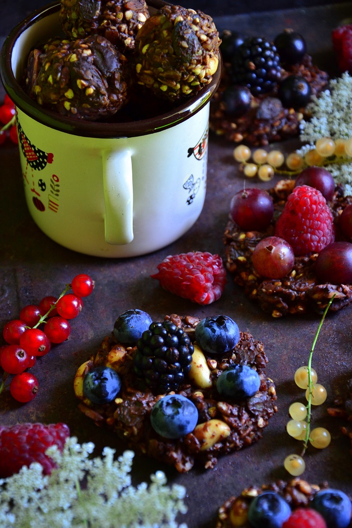 Niewiele osób wie, że można jeść surową i wcześnie namoczoną kaszę gryczaną. Jest lekko orzechowa w smaku. Miękka z lekką chrupkością. Na blogu były już batony z jej dodatkiem. Stały się jednym z najchętniej czytanych i wykonywanych przepisów. Nie dziwi mnie to 🙂 Postanowiłem zaszaleć i zrobić małe ciasteczka bez pieczenia. Wybitnie czekoladowe z wieloma …