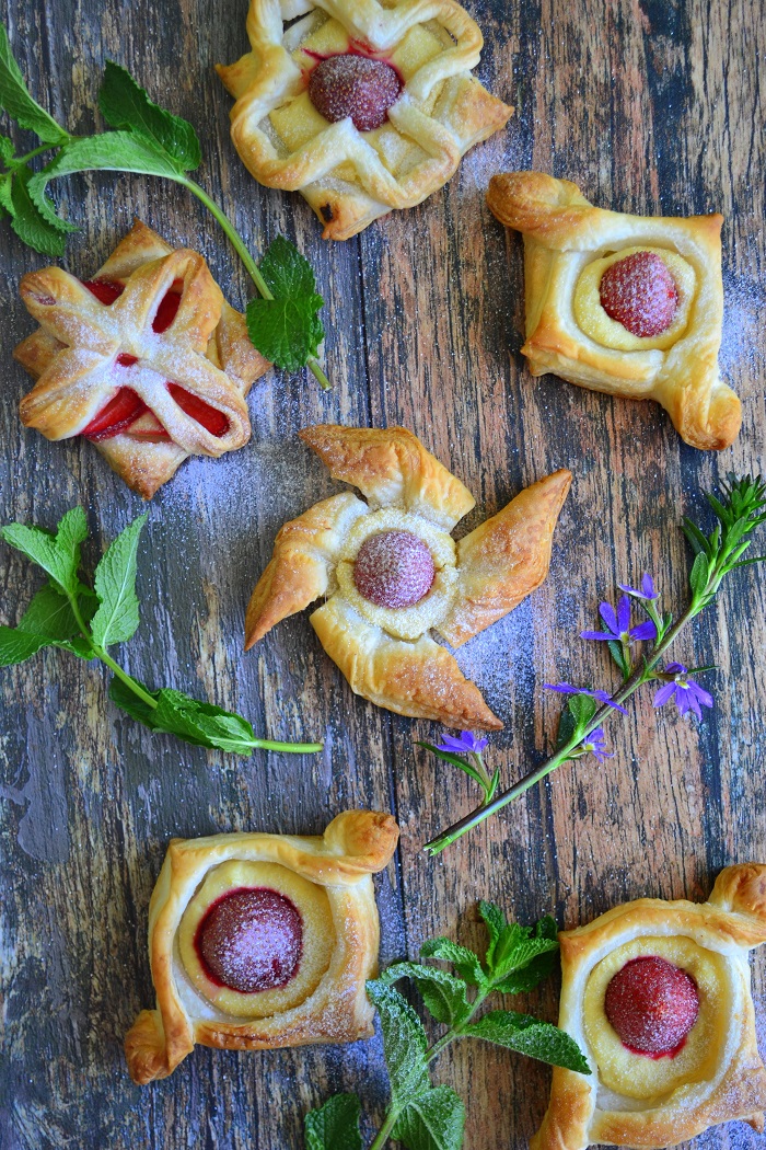 Roślinne wersje ciasta francuskiego są powszechnie dostępne. Czasem ich składy są dziwne, ale można też dostać te lepszej jakości. Lubię to ciasto na słodko i wytrawnie. Wszelkie wytwory szybko się robi. Kilka chwil i gotowe. Na słodko lubię w towarzystwie owoców. Najlepsze są te miękkie. Truskawki, maliny, jeżyny. Idealnie się pieką. Jeżeli współgrają ze słodkim …