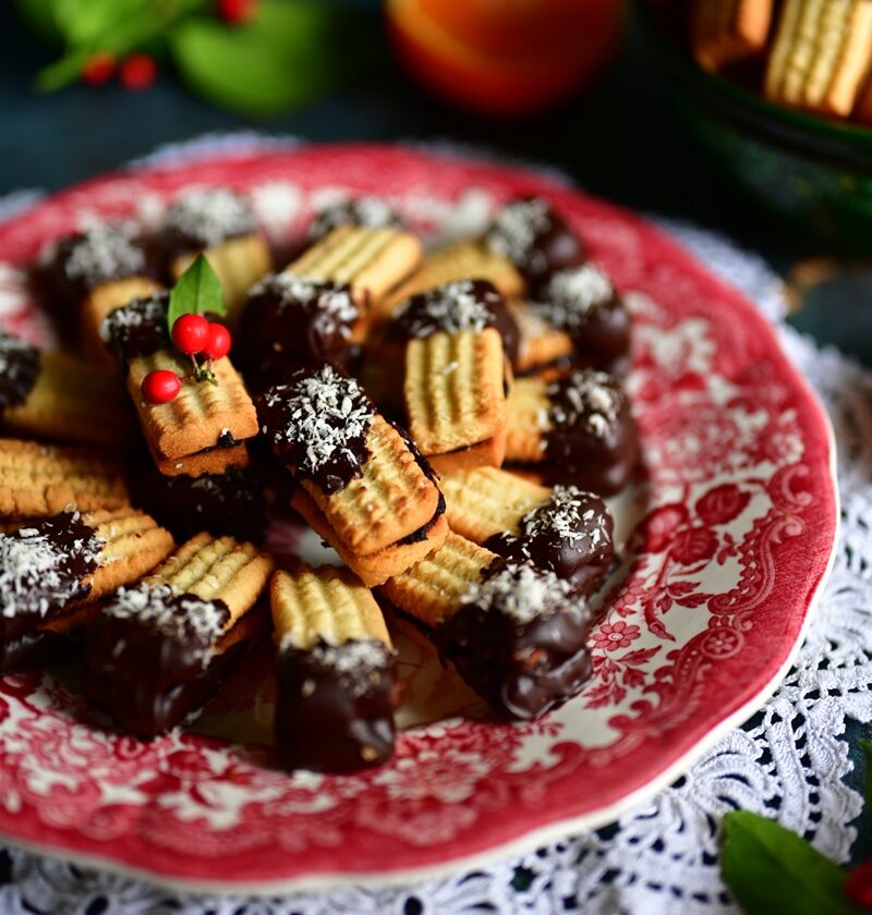 To już 20 rodzaj ciasteczek cieszyńskich na blogu. Jak co roku, wstawiam kolejne i będzie ich jeszcze więcej. Uwielbiam tradycję małych słodkości Śląska Cieszyńskiego i za każdym razem, kiedy jestem w Cieszynie, obowiązkowo odwiedzam sklep z foremkami po stronie czeskiej. Zaopatruje się w foremki do wykrawania i wylepiania ciasteczek. Również zakupuje przystawki do maszynki, by można było wyciskać kruche słodkości. Ciastka z maszynki to klasyka naszej kuchni. Również na terenach Beskidu Cieszyńskiego, wypieka się małe ciasteczka z maszynki, które skleja się powidłami, roztopioną czekoladą lub dżemem malinowym. Dodatkowo jeden z końców ciasteczek, zanurza się w roztopionej czekoladzie. Nadzienie sprawia, że ciastka po pewnym czasie z kruchych, stają się tak miękkie, że rozpływają się ustach. Jeżeli nie macie maszynki, to ciasto można wycisnąć przez rękaw cukierniczy zakończony płaską tylką. Do wypieku najlepiej jest połączyć mąkę pszenną uniwersalną z krupczatką. Ciastka są idealnie kruche po upieczeniu. Jeśli chodzi o powidła do przełożenia, najlepiej użyć gęstych i by były świąteczne, dodać do nich trochę przyprawy piernikowej. Pieczenia, czas start.