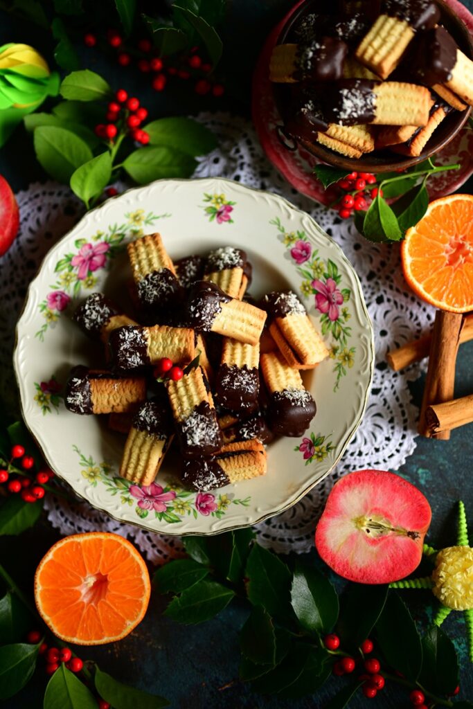 – wyjąć z piekarnika i wystudzić. Następnie sklejać powidłami i maczać w roztopionej czekoladzie. Układać na papierze do pieczenia i czekać aż będzie stała