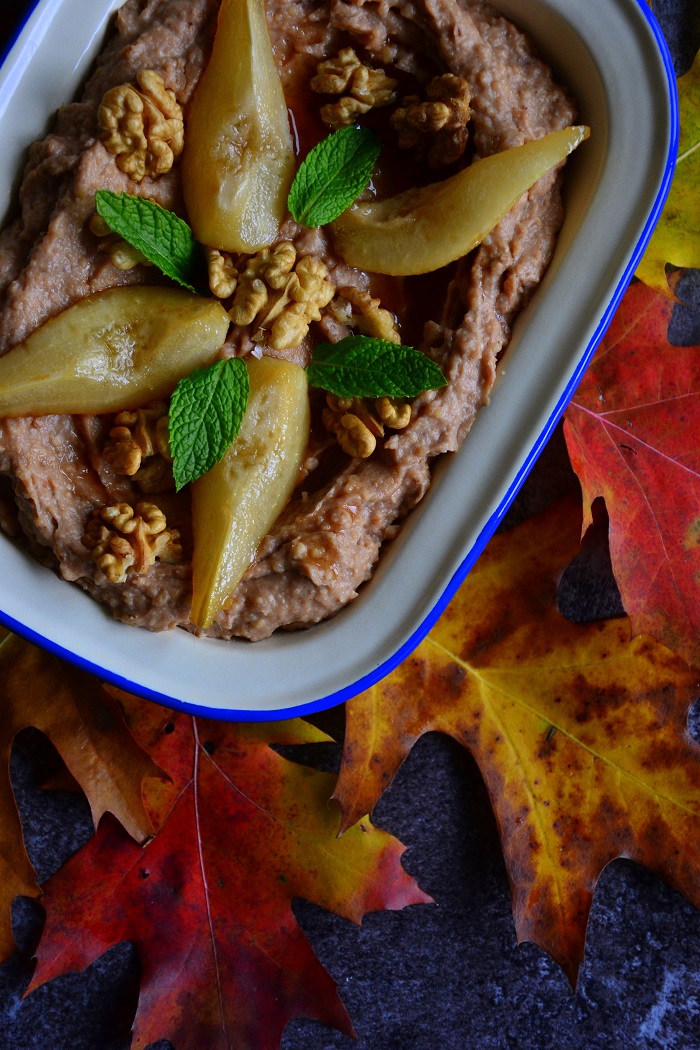 Mój mus jest na bazie kaszy jaglanej. Dokładnie zmiksowana z mlekiem roślinnym. Do smaku dodałem suszonych śliwek. Nadały lekko kwaskowego i wędzonego posmaku. By mus był bardziej czekoladowy, wzbogaciłem go surowym kakao. Słodkości zapewniła melasa karobowa. Do smaku soczyste i kwasowe maliny 🙂