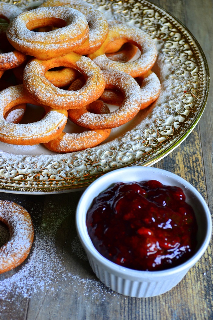 – do garnka wlać mleko i lekko podgrzać. Dodać drożdże, 2 łyżki mąki i 2 łyżki cukru. Dokładnie wymieszać. Przykryć folią i odstawić na 15 minut w ciepłe miejsce
