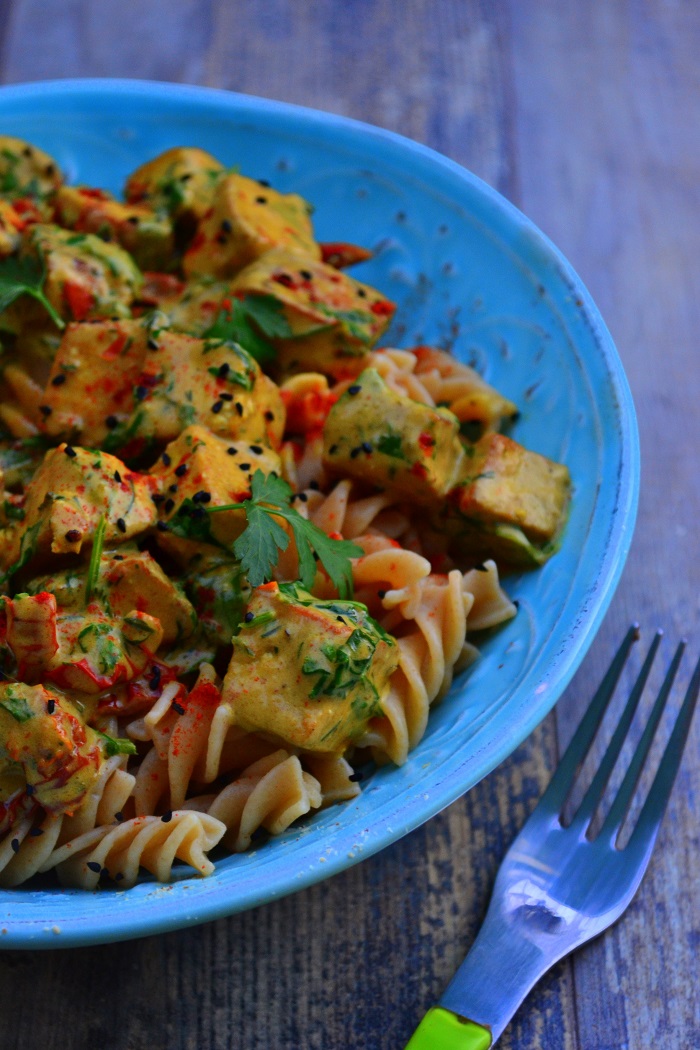 – wyłożyć na talerz. Posypać kolendrą, zatarem lub kminem i polać oliwą
