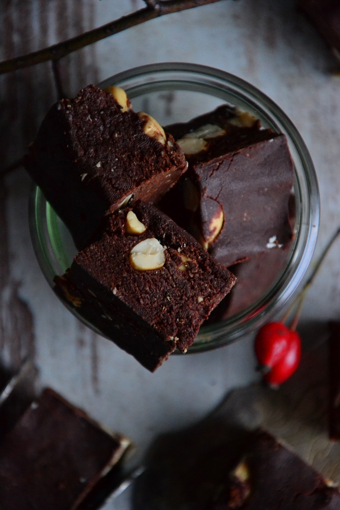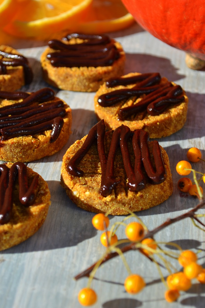 4. Wypróbowałam, wyszło wyborne, luksusowe niemal, co z ciastem dyniowym niekoniecznie mi się kojarzy 🙂 Dokonałam paru modyfikacji, zależnie od zawartości moich szafek kuchennych. Do ciasta użyłam samej mąki pełnoziarnistej (pszennej i orkiszowej), słonecznika zamiast orzeszków i nieco więcej daktyli. Obawiałam się, że wyjdzie bardziej zbite, ale jest takie samo, jak na zdjęciu – wilgotne, a wciąż lekko puszyste, delikatnie napowietrzone. Krem posłodziłam rozmoczonymi daktylami, a zamiast jednej z czekolad dodałam nieco ciemnego kakao, parę łyżek mleka roślinnego (moja dynia była dość sucha, nawet jak na hokkaido) i odrobinę wanilii. Wyszło nadspodziewanie pysznie i obficie, do tego stopnia, że ciasto zarówno przełożyłam, jak i pokryłam wierzch oraz boki. Dziękuję za przepis i gratuluję tak kreatywnej, smacznej strony!