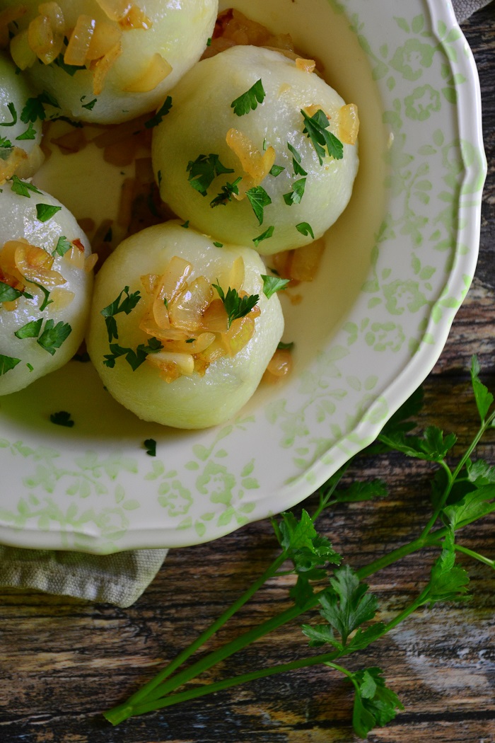 – piec w temperaturze 200 stopni do miękkości (około 35-40 minut). Wystudzić i wyjąć miąższ