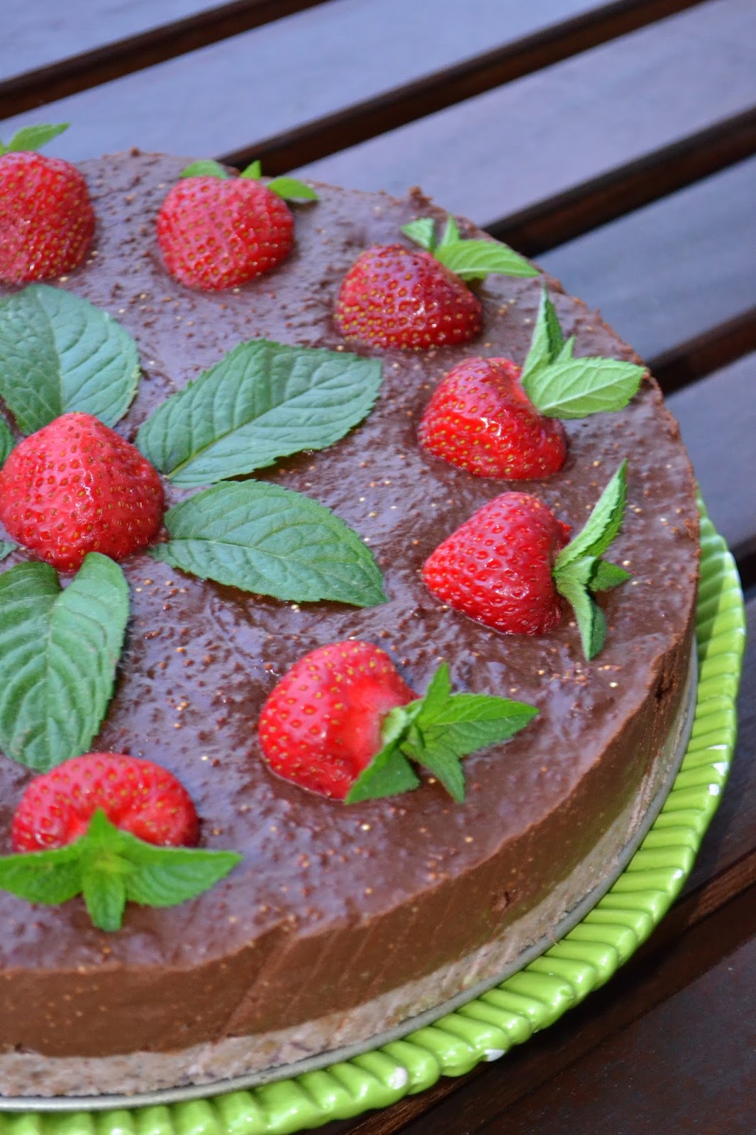 W masie oprócz czekolady pojawiła się ugotowana w mleku kokosowym komosa ryżowa i przyprawy typowe dla piernika. Cynamon, kardamon, goździki. W połączeniu z truskawkami i miętą dają fajny efekt smakowy.