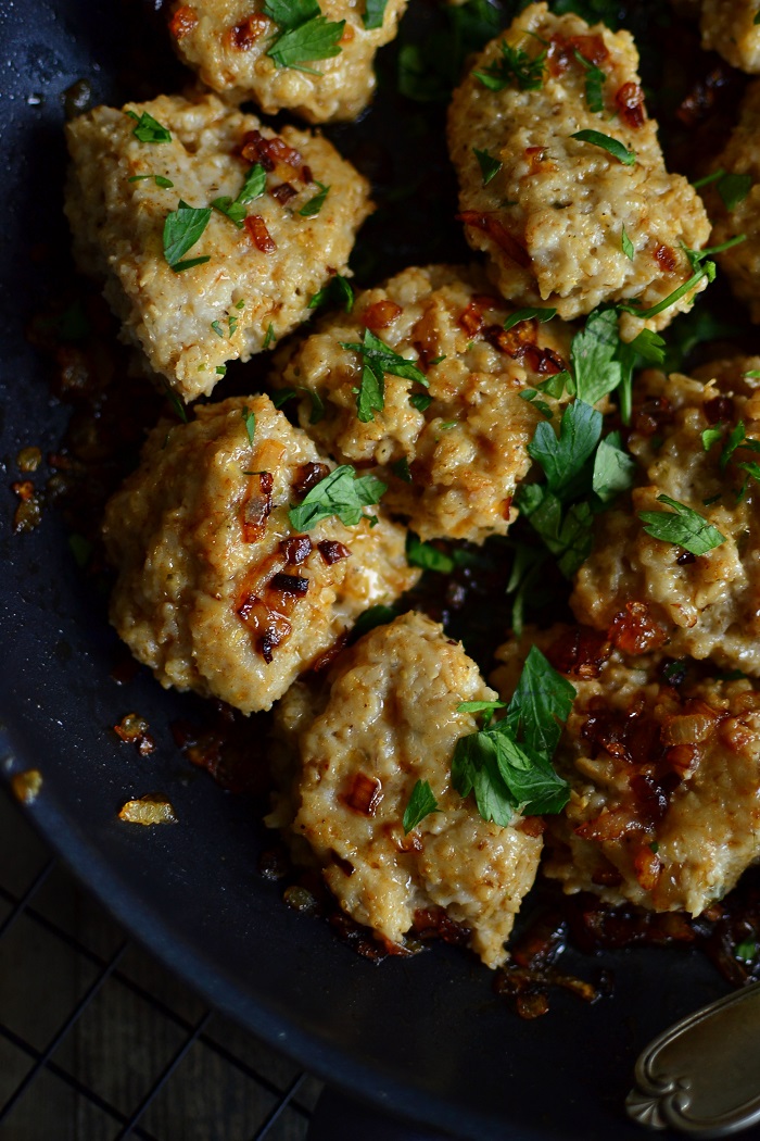 W przestrzeni kulinarnej pojawiają się również placki ziemniaczane z innymi dodatkami warzywnymi. Na śląsku dodaje się dynie, na Podlasiu marchewkę, w przedwojennej kuchni lwowskiej jabłka. Na festynach kulinarnych od kilku lat, spotykam placki z dodatkiem cukinii. Są delikatne w strukturze. Są o niebo lepsze niż z samej cukinii. By masa się związała, dodaje się jajka i mąkę pszenną. Jak zrobić takie placki bez jaj? Można dodać kleiku lnianego, ale o wiele lepsza jest mąka z ciecierzycy. Idealnie wiąże składniki i nadaje chrupkości plackom. Do masy dodaje się czosnek, szczypiorek, tartą cebule i koperek. Podawane są z sosem pomidorowym lub czosnkowym. A, teraz proszę się chwalić, jakie placki są w waszych domach 😊