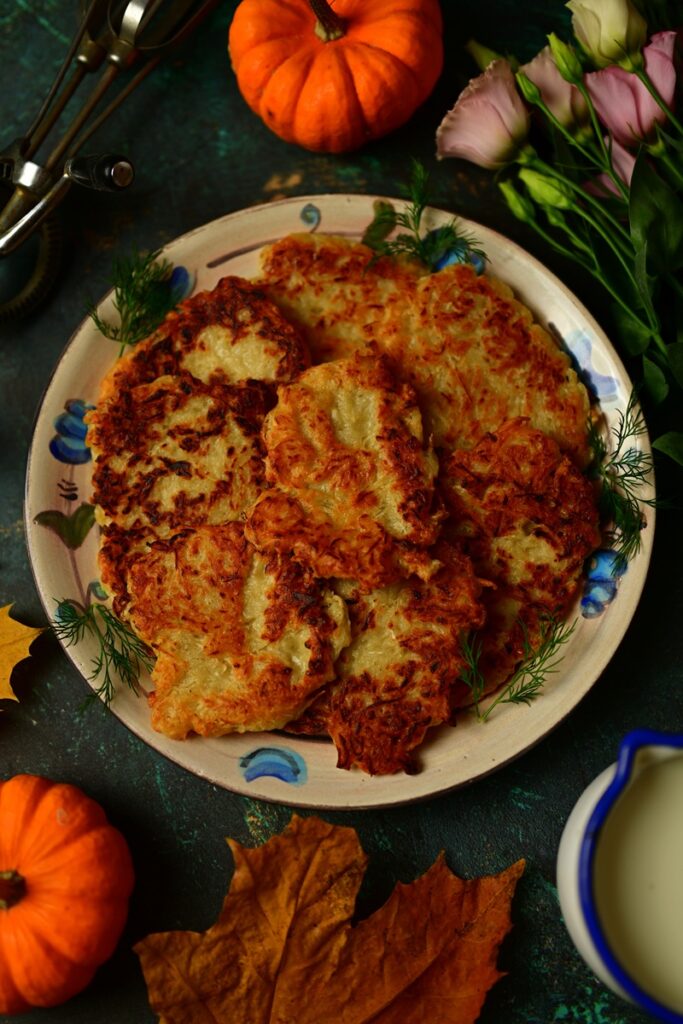 Jeśli znacie i lubicie bieszczadzkie fuczki, to również pokochacie szandorki. Pochodzą również z Podkarpacia, ale z okolic Jasła (głównie z gminy Dębowiec). To również placki z dodatkiem kiszonej kapusty i ciasta naleśnikowego, ale przygotowywane inaczej. Fuczki robi się z kapusty kiszonej gotowanej lub surowej. Szandorki są z kapusty kiszonej smażonej lub kapusty słodkiej podpiekanej w piekarniku. Skąd taka nazwa placków? Szandor w gwarze okolic Jasła, to twarda i niewyrośnięta lub niezawiązująca dużej główki kapusta. Ponieważ ziemie nie są najwyższej klasy, szandory występowały w tych okolicach w dużej ilości. By nie marnować również takiej formy kapusty, siekano ją i kiszono lub pozostawiano na polach dla biedniejszych mieszkańców wsi. Szandor to kapusta drugiej kategorii o bardzo twardej strukturze. Dla uzyskania lepszej konsystencji, pozostawiano ją do przemrożenia lub opiekano w piecach chlebowych. Ukiszone szandory wykorzystywano do smażenia szandorków. Wcześniej kiszoną kapustę należało smażyć na tłuszczu ponad godziną, a następnie łączono ją z gęstym ciastem naleśnikowym. Ciasto doprawia się solą i pieprzem, ale ja uwielbiam dodatek mielonego kminku w potrawach z kapusty, dlatego go dodałem. Szandorki podaje się ze śmietaną lub cukrem.
