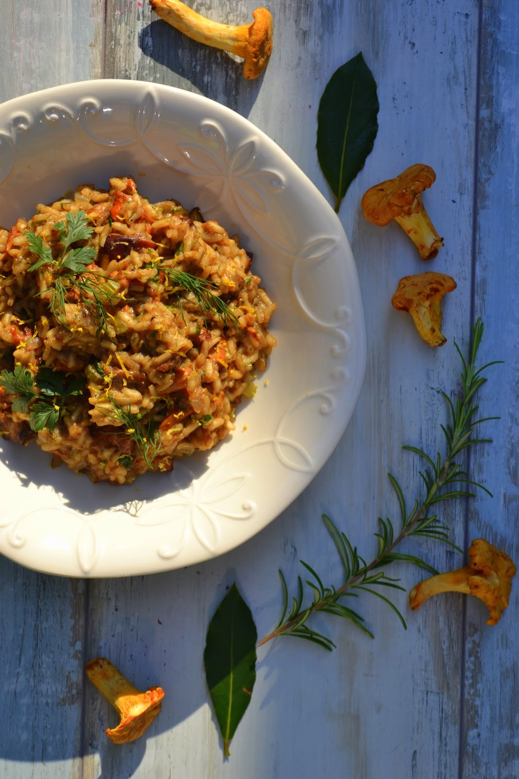 Połączyłem świeże kurki z mrożonymi podgrzybkami. Uwielbiam połączenie grzybów z ryżem. Takie risotto, to jedna z moich ulubionych włoskich potraw.