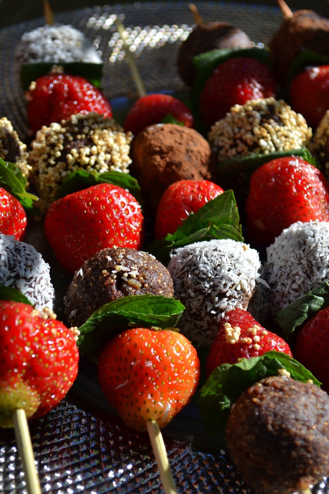 – na patyczki do szaszłyków nadziewać na przemian truskawki, listki mięty i trufle