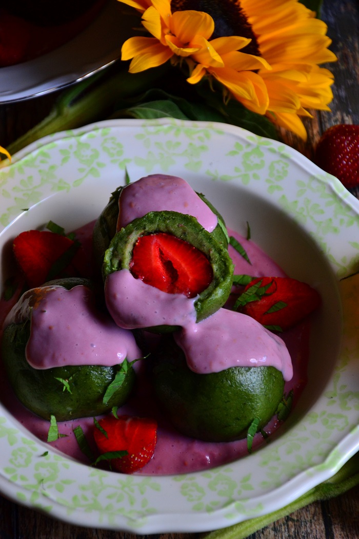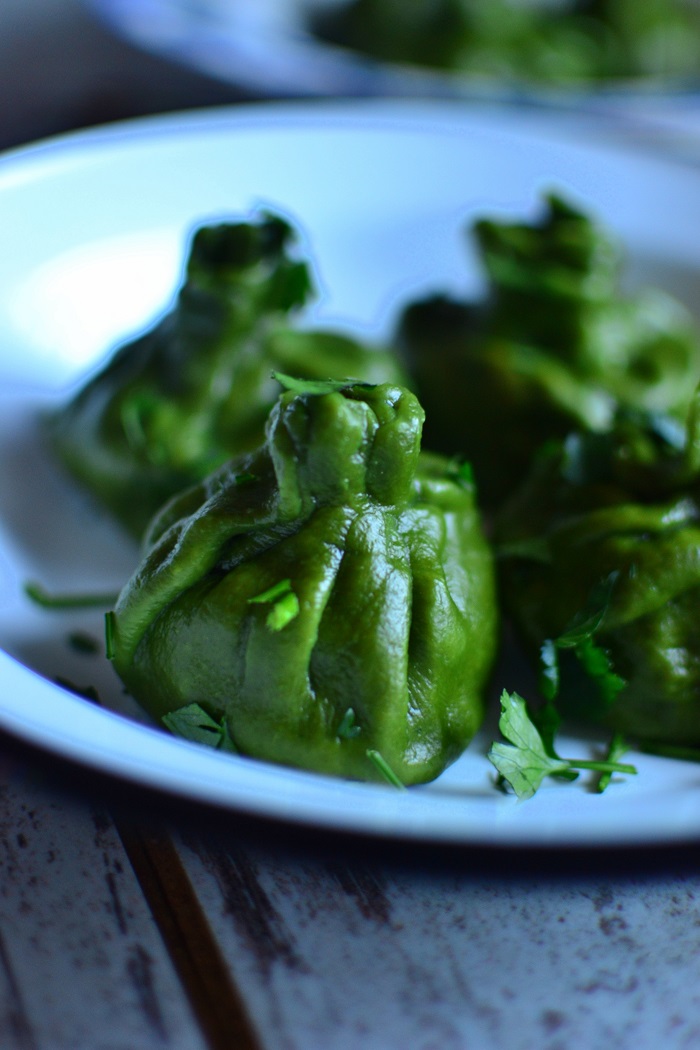 ZIELONE CHINKALI Z SOCZEWICĄ I SUSZONYMI POMIDORAMI