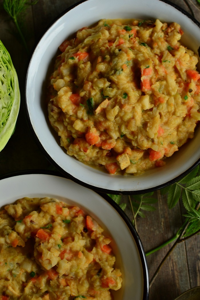 To danie jednogarnkowe, w którym zastosowano warzywa wiosenne. Młoda kapusta, kalarepa, młoda marchewka, koper, lubczyk i inne przyprawy. Oprócz aromatycznego dania, wykorzystałem te części warzyw, które najczęściej lądują w koszu. Niepotrzebnie, bo są jadalne. Gdy kupujemy kalarepę i młoda marchew, zazwyczaj sprzedawcy pytają się, czy oderwać nać lub liście. My zgadzamy się, bo nie wiemy, …