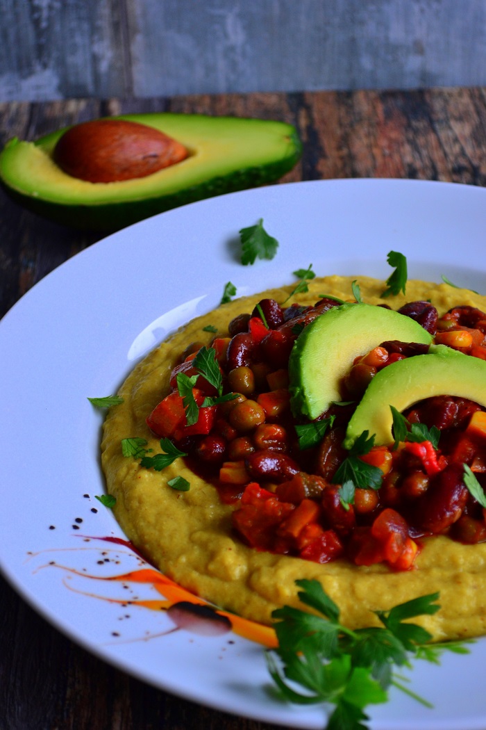 Czy są dania lub produkty, które uzależniają? Zdecydowanie tak. Przykład na zdjęciu powyżej 🙂 Połączenie kilku składników z kuchni meksykańskiej z włoską polentą. To danie wymiata. Bardzo sycące, rozgrzewające i pełne smaku. Proste w wykonaniu. Mieszanka kukurydzy, czerwonej fasoli, pomidorów, czosnku, czerwonej cebuli, zielonego groszku z sokiem z limonki i kawałkami awokado. Nic dodać nic ująć. …