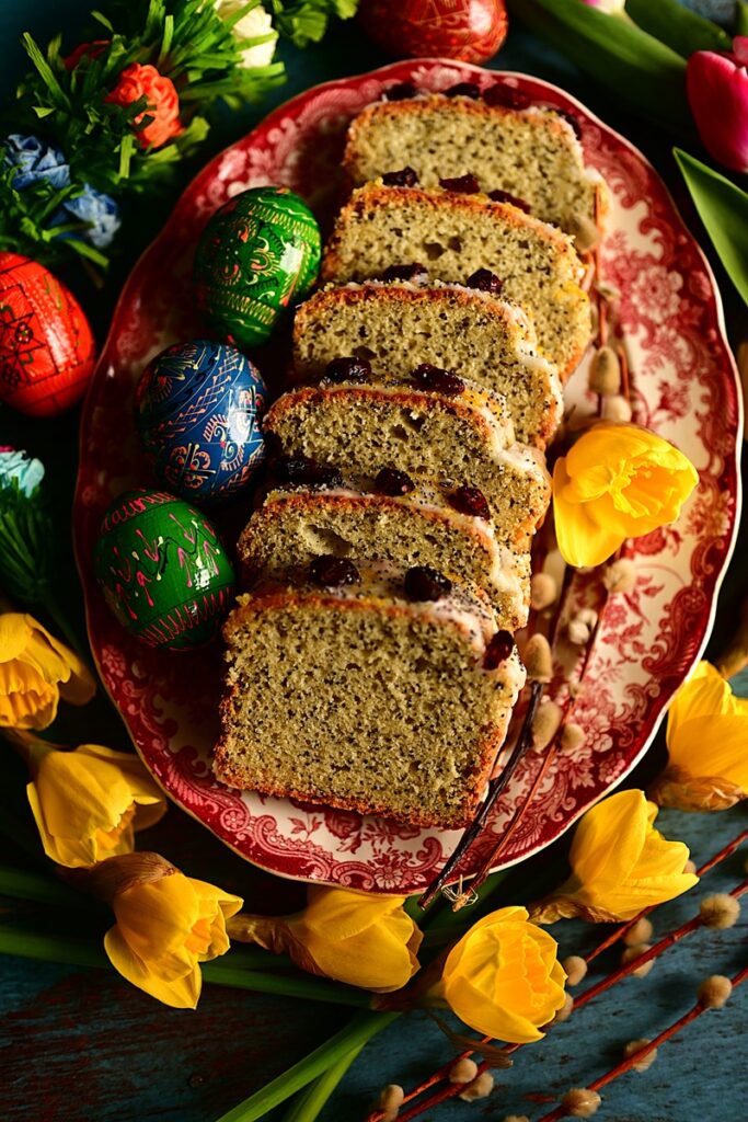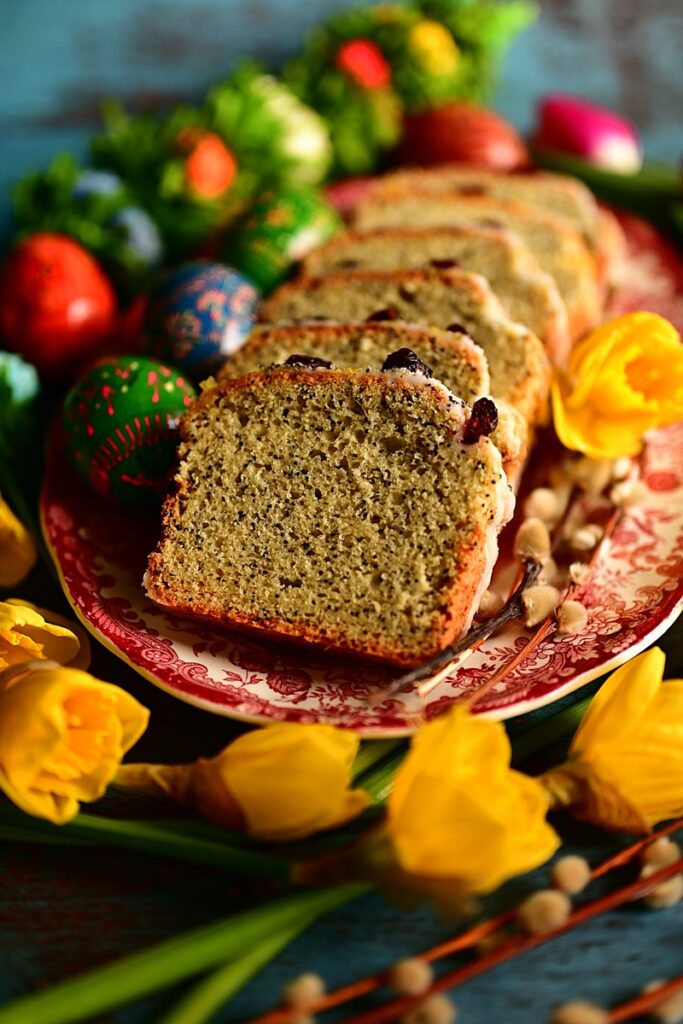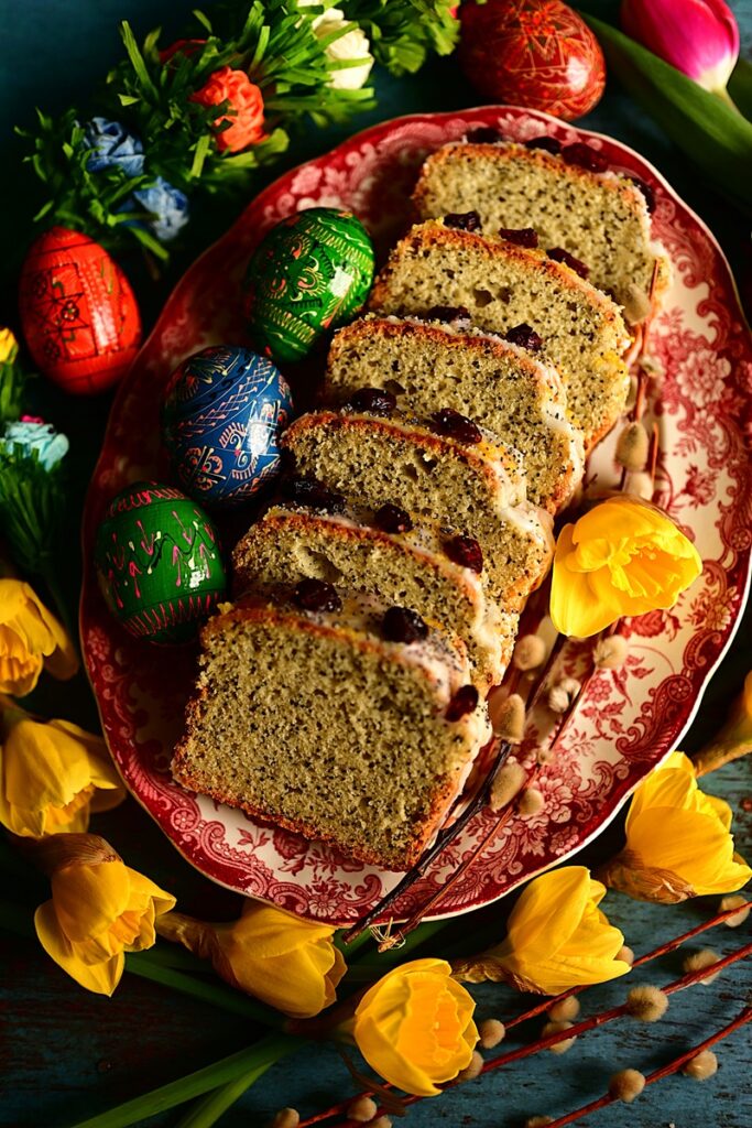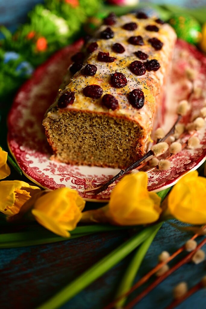 Wielkanocne babki przybierają przeróżne kształty. Klasyczne z rowkami od form, w których są wypiekane po podłużne z keksowych foremek. Małe i duże. Drożdżowe, piaskowe, muślinowe. Szafranowe, bakaliowe, cytrusowe, kakaowe. Z lukrem lub obsypane cukrem pudrem. Podczas moich podróży po Polsce, spotkałem wiele oryginalnych w wyglądzie jak i sposobie wypiekania. Ta babka jest niezwykle prosta w wykonaniu i zawsze się udaje. Suche składniki miesza się z mokrymi, do foremki i pieczemy. Połączenie wyrazistego smaku cytryny i maku jest tu idealne. Oprócz soku i skórki z cytryny, dodałem jeszcze ekstrakt cytrynowy do podbicia smaku. Również lukier jest cytrusowy. Babkę piekłem w formie do keksów, ale myślę, że również w klasycznej formie powinno wyjść bez problemów.