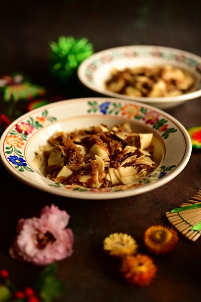 – do garnka włożyć drobno posiekaną kapustę oraz grzyby wraz z wodą, w której się moczyły. Gotować na małym ogniu przez 1,5 godziny