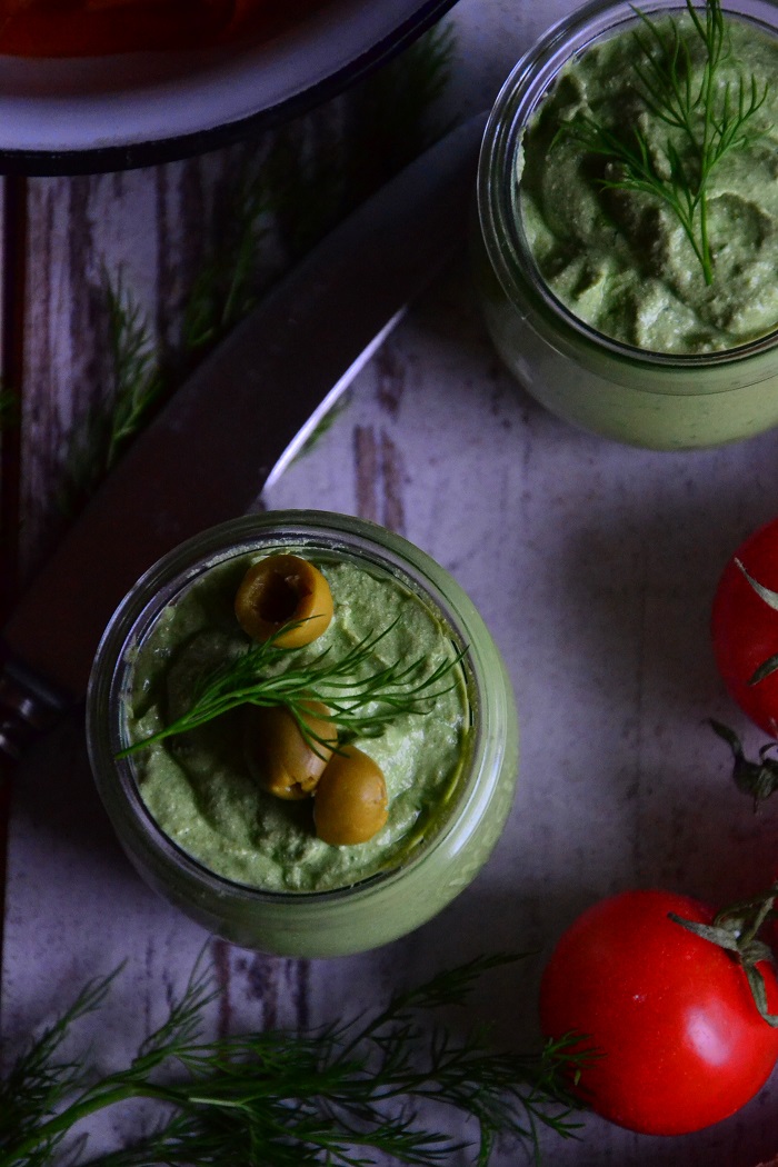 Klasycznie do wędzonego łososia podaje się bajgle i kremowy serek kozi. Na tym blogu oczywiście takiego zestawu nie uświadczycie. Serek musi być wegański a do tego najlepiej w zdrowej wersji. Tłusty, pełen białka, żelaza i innych dobroczynnych składników. Idealnie do tego nadaje się tofu, awokado i chlorella. By masa nie była mdła, trzeba dodać coś kwaskowego i czosnkowego. Można użyć soku z cytryny, ale, po co jak jest sok z kiszonych ogórków. Kwaśny, słony i zarazem czosnkowy. Kremowy i pięknie zielony. Idealnie uzupełnia smakiem wędzoną i rybną marchewkę.